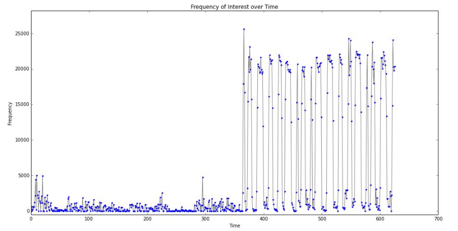 Once we get the frequency to which we are listening to then we will plot the frequency vs time we will obtain the below results as shown in the plot