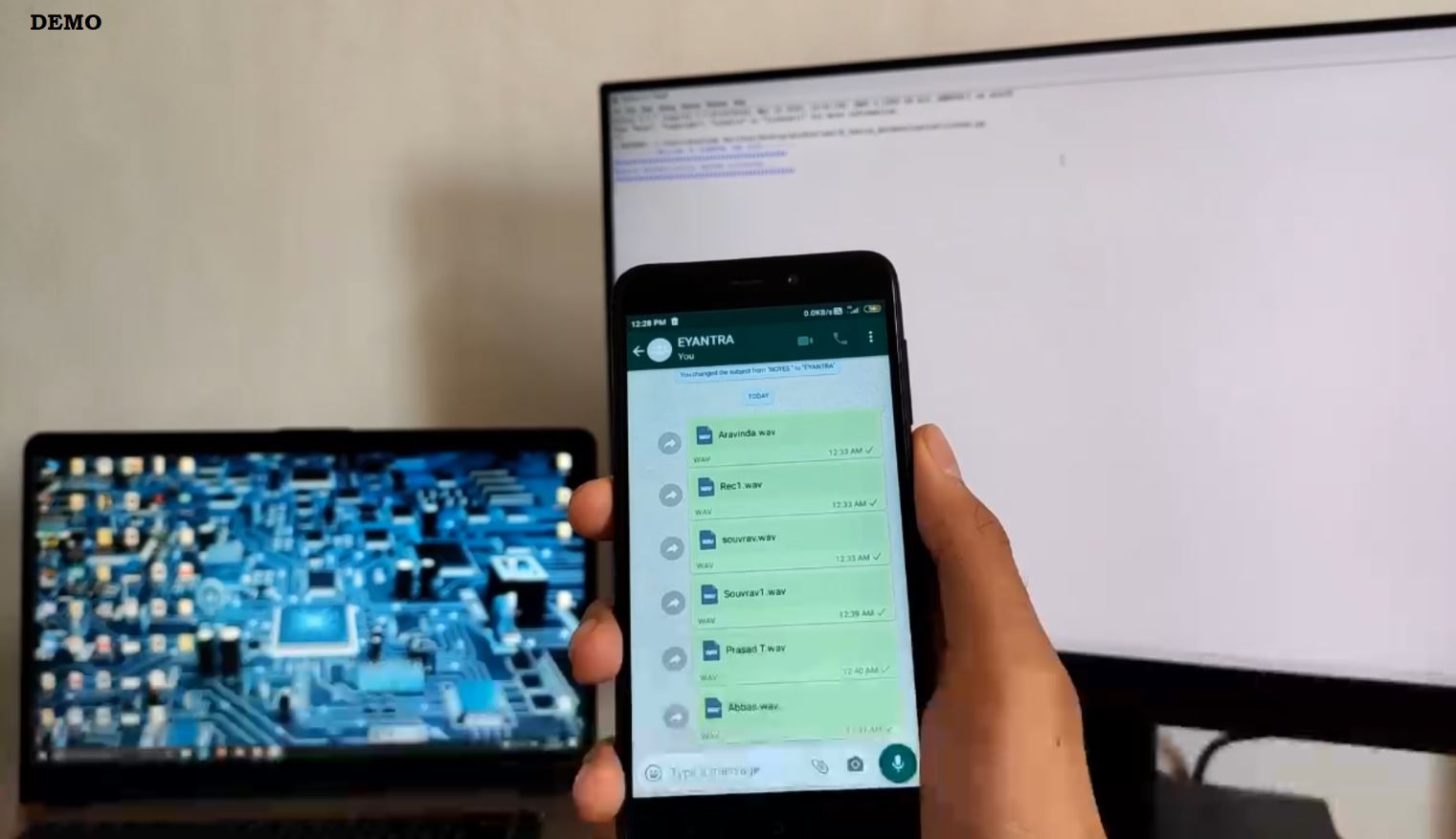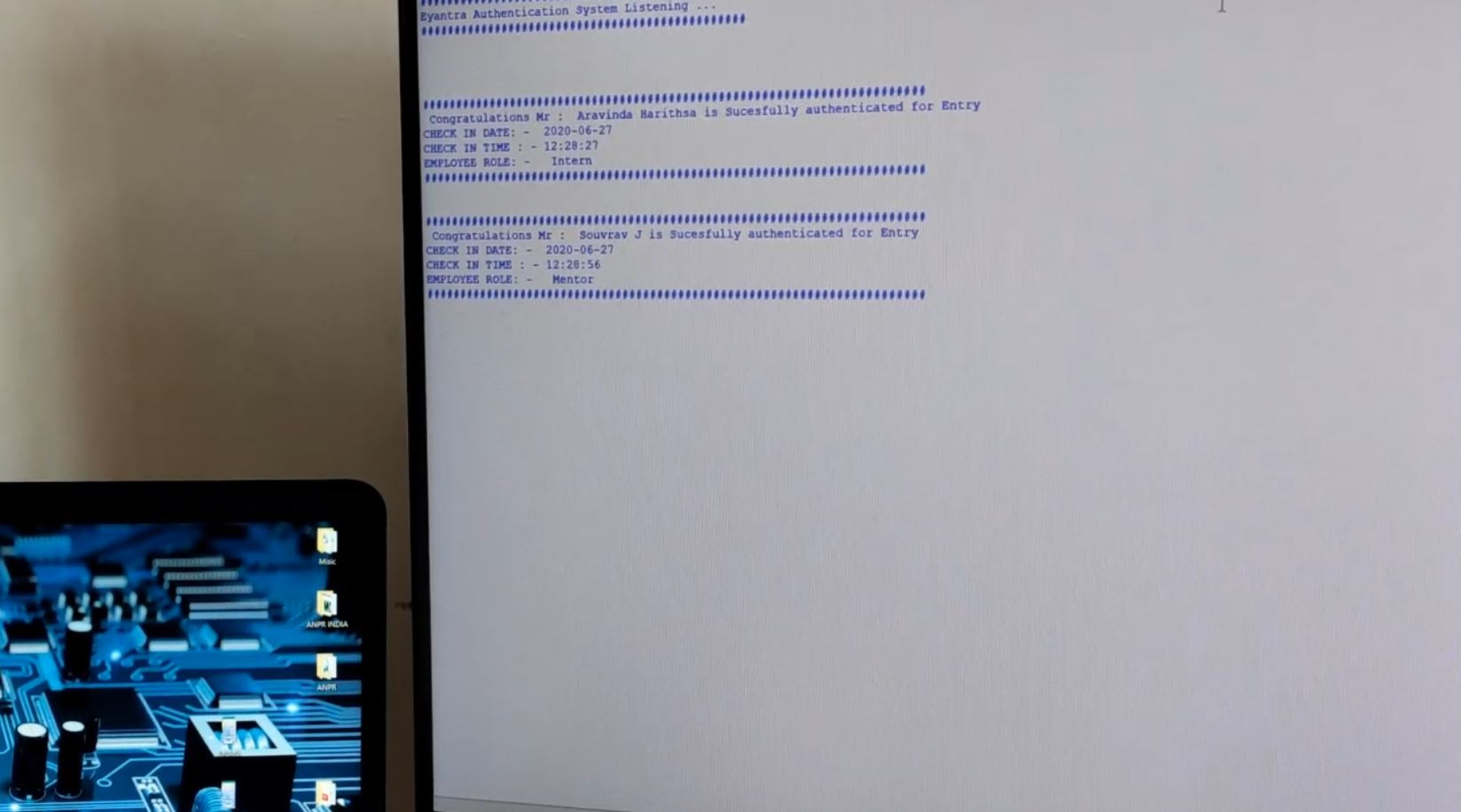 Here in this pic 2 of the users where authenticated using the ultrasonic audio key which was played by phone . as this was proof of concept we just tested on to static key generation , in future versions we will work on dynamic key which will be exchanged based on encoding and decoding key based on time factor .